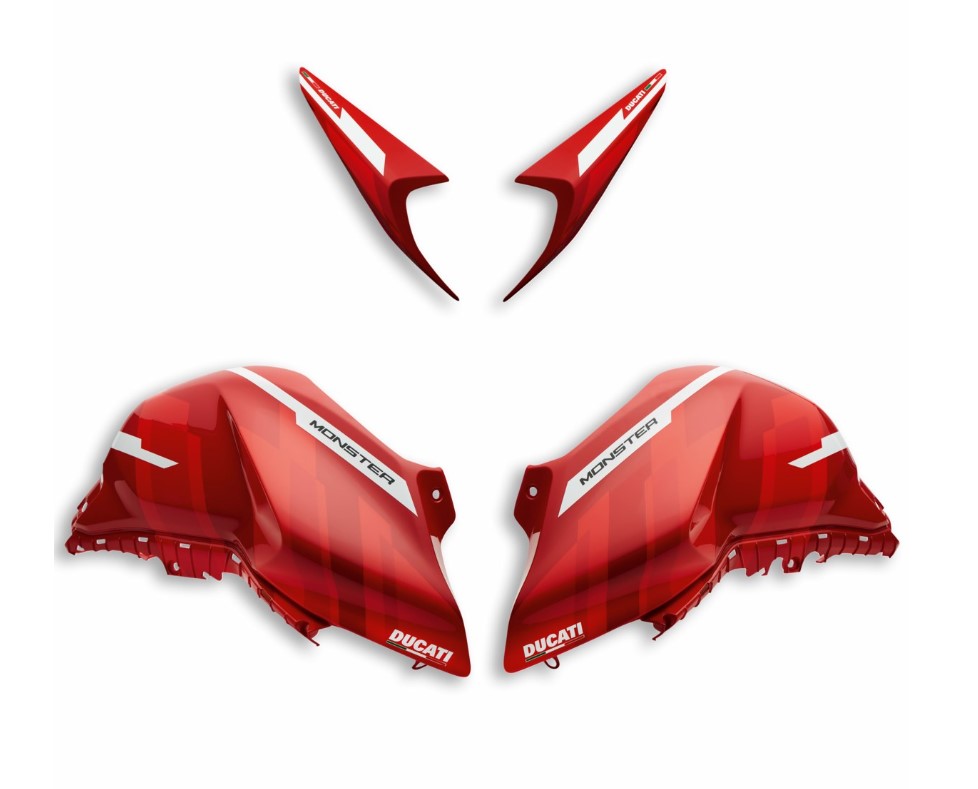 ※通常定価74,206 円の品。シリーズと同じ3種類の刺激的なカラーが用意されたフューエルタンクカバーとサイドパネルのキットで、ぜひモンスターをカスタマイズしてください。真のモンスターファンを夢中にする、若さ溢れるスポーティースタイルです。