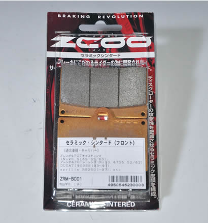 ZCOO ZRM-B001 BREMBO 1ピンタイプ  : 10%OFF   for ’97以前900SS、’99以前M900、851/888---握れば握った分、ブレーキングが体感できる、セラミックシンタード。ガツン、と効くブレーキングよりも、真綿を絞めるように、握れば握ったほど、効力を発揮するように開発・設定したパッド。さらに、思い通りスムーズに減速する為、ライダーが体感しているよりも減速する、“気持ちいい体感減速” を追及しました。レース用ブレーキパッドにありがちな温度依存性(※1)も少ない為、(zrm-b001)